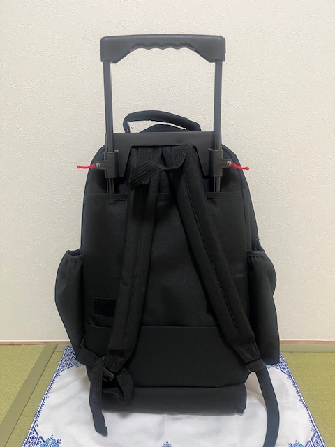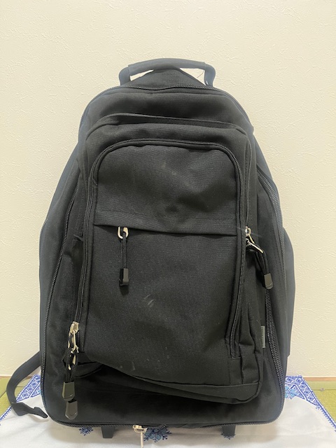 背負うこともできて、キャスター付きで転がすこともできるハイブリッドタイプ。場面に応じて使い分けられて便利です。私は長期で行くときはこのリュックを機内持込荷物として持って行きます。